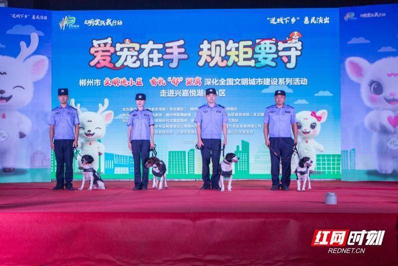 红网时刻新闻9月29日郴州讯(记者 何雨杏)9月28日傍晚,郴州市“文明进小区 有礼‘邻’距离”深化全国文明城市建设系列活动第四站走进兴嘉悦湖山小区。以“爱宠在手 规矩要守”为主题,活动通过文明实践集市与文艺演出,让文明养宠理念、和谐邻里情融入居民生活。